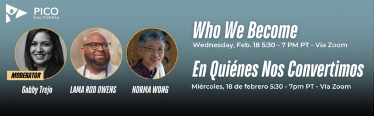 Join PICO California for a soulful virtual conversation with Lama Rod Owens and Norma Wong Roshi, moderated by Joseph Tomás McKellar. Together, we’ll explore what it means to meet this moment with courage, wisdom, and spiritual grounding, and how who we are shapes the future we are building.